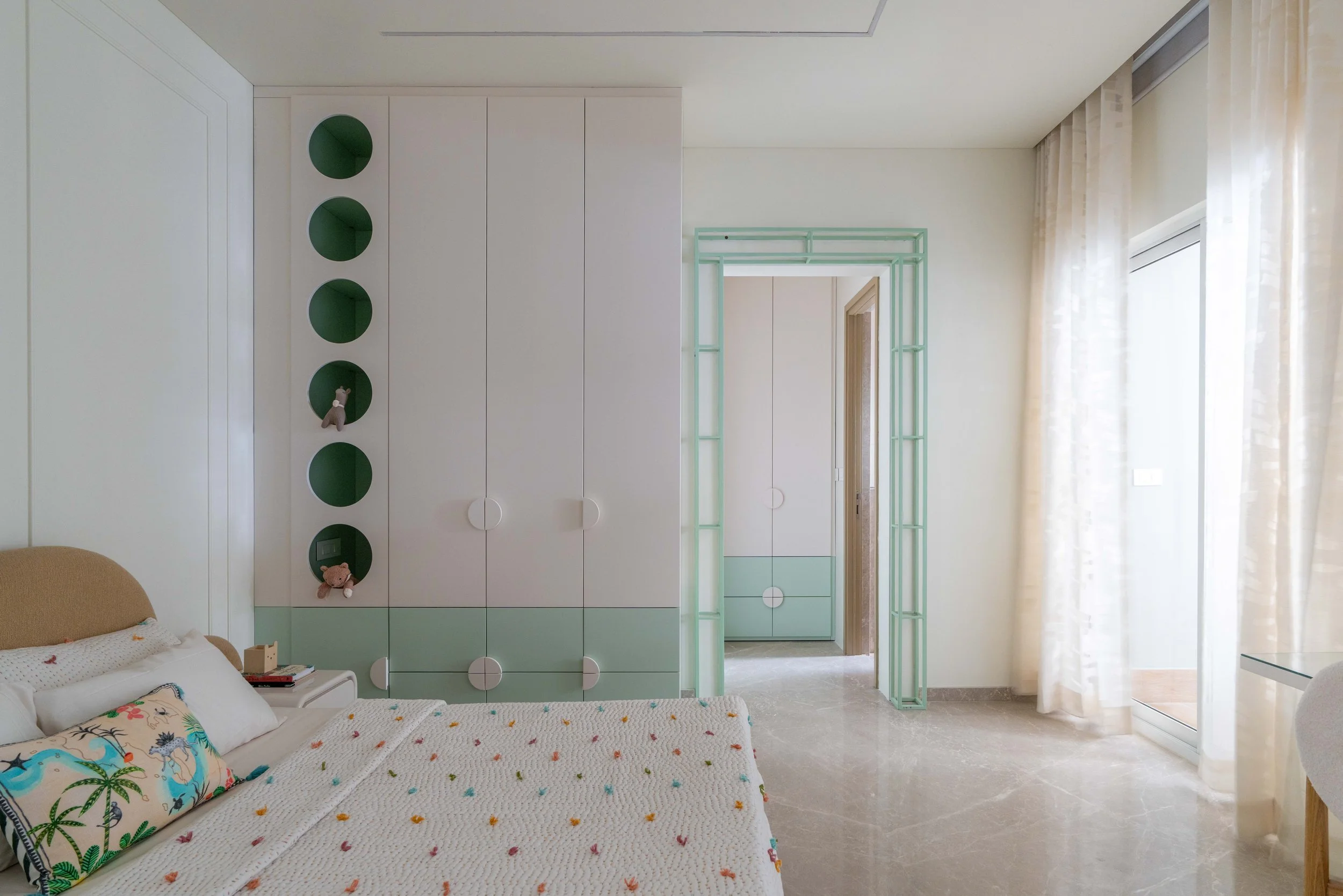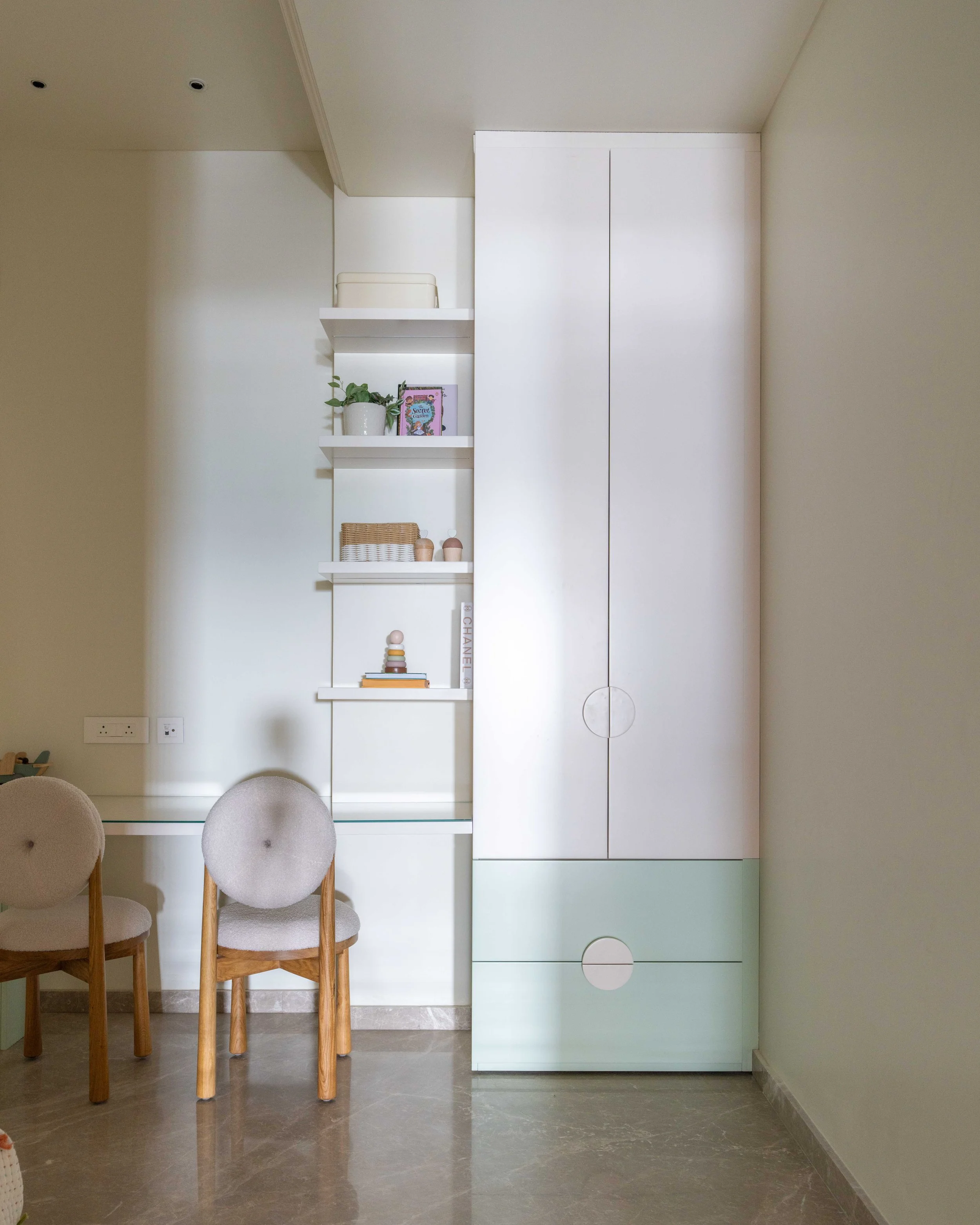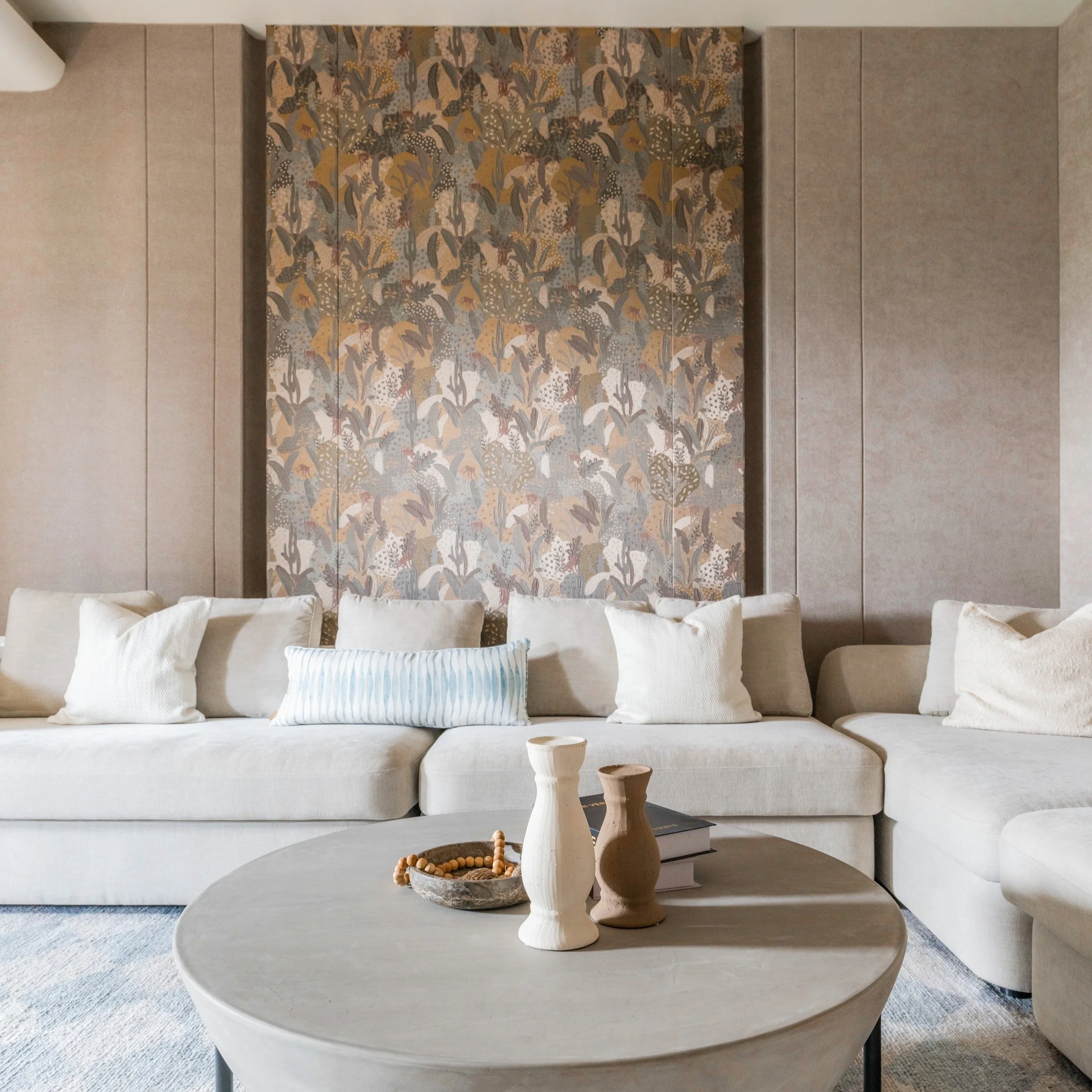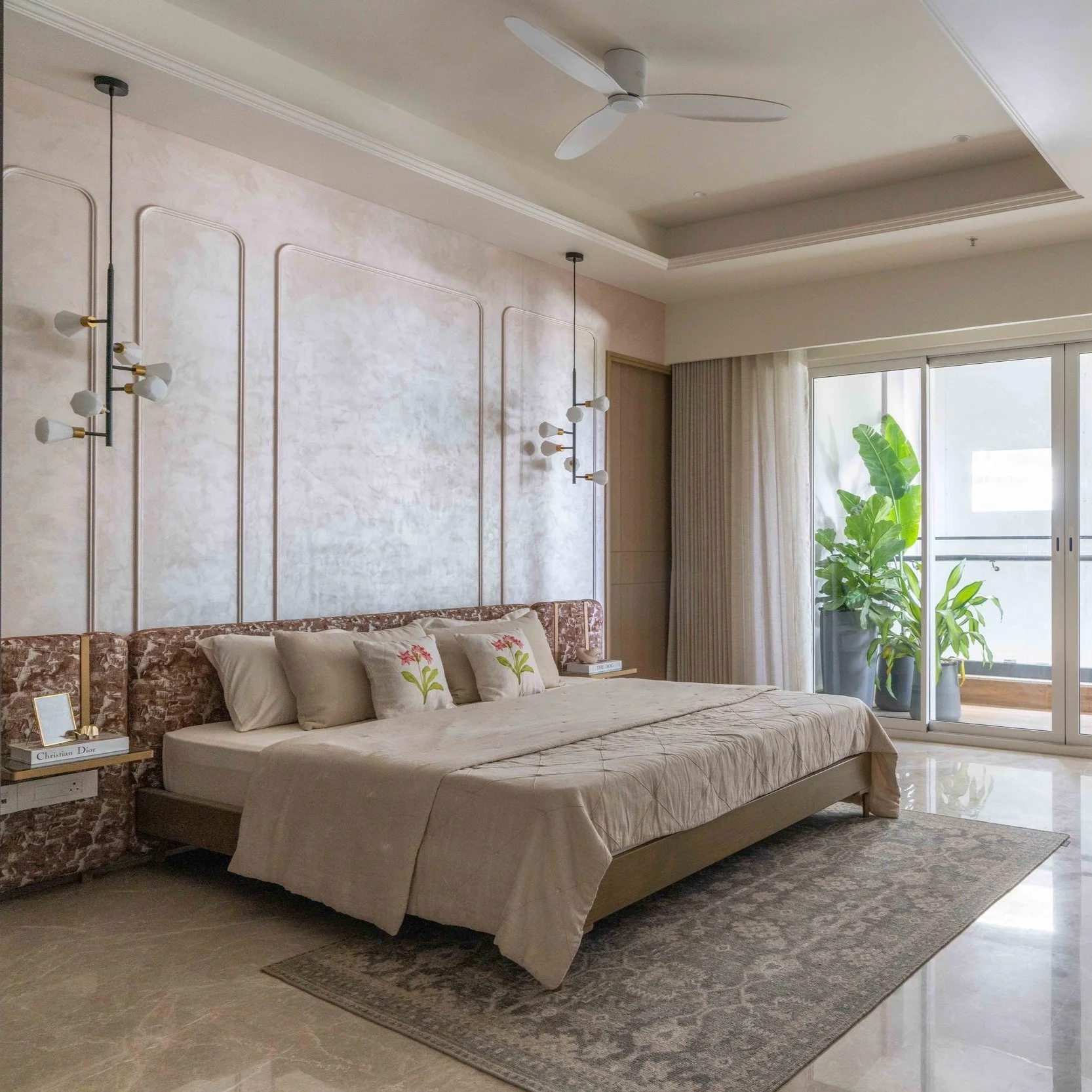 Eternal Glow, as we call it, is a luxury project that comprises two model apartments we designed for Aurobindo Pearl. Rooted in timelessness, much like the pearl itself, the design incorporates elements from different styles and eras, adding visual interest to every space and creating moments of connection for all kinds of visitors. While both apartments are designed to be visually cohesive, each has its own unique take on quiet luxury.