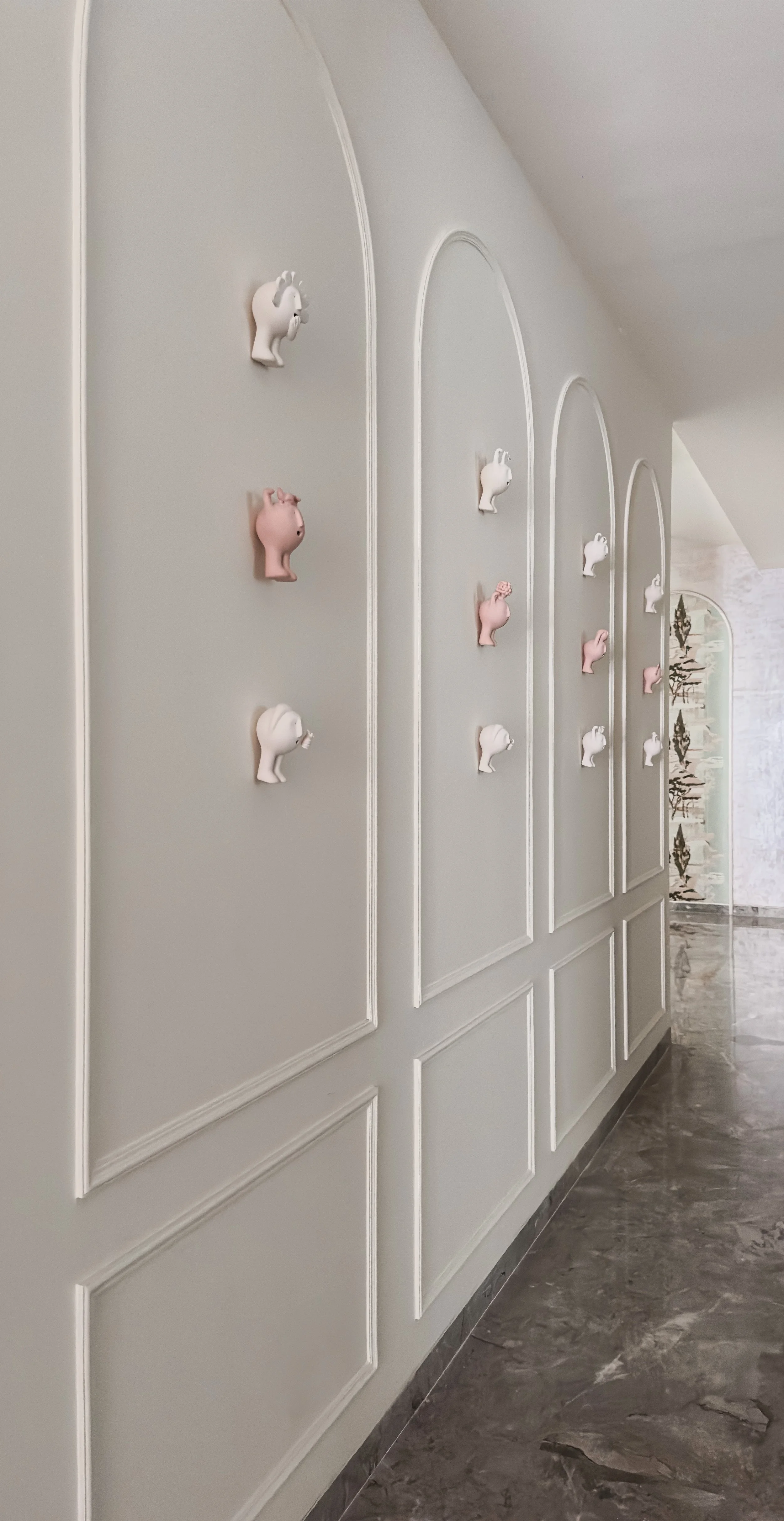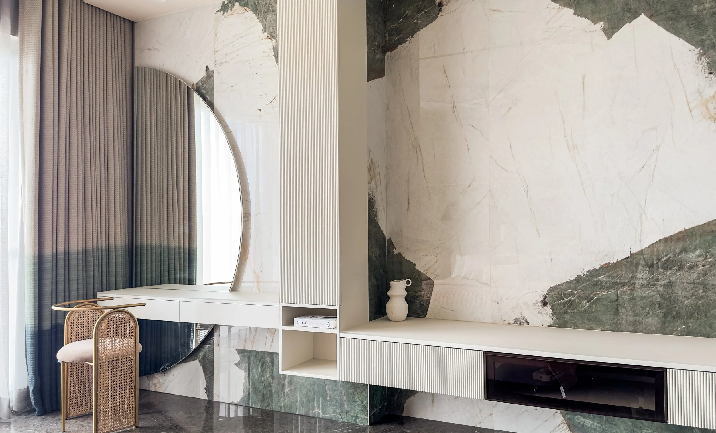 "Flowing Alcove" is a design concept that transforms spaces by integrating niches into ceilings and walls, creating a captivating interplay of light and shadow. These alcoves are designed to add visual interest and depth, making light an active participant in the design. Materials such as fluted glass, textured tiles, and wicker are meticulously chosen for their ability to enhance this effect, introducing layers of texture and warmth. The use of these materials ensures a harmonious flow throughout the space, encouraging a sense of movement and exploration