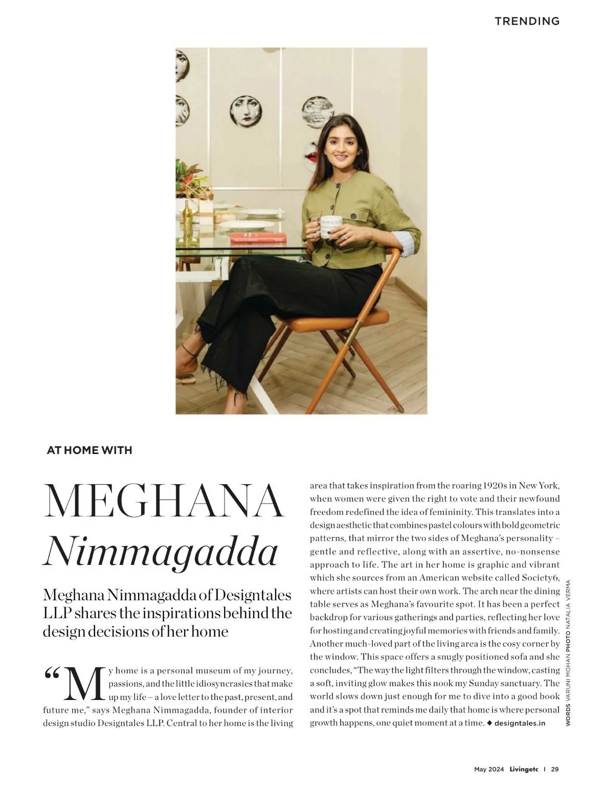 Elevating relaxation, literally! This dreamy living room was designed to bring the experience of a garden swing right inside the living room with a beautiful suspended swing and a custom nature-inspired wall installation.
