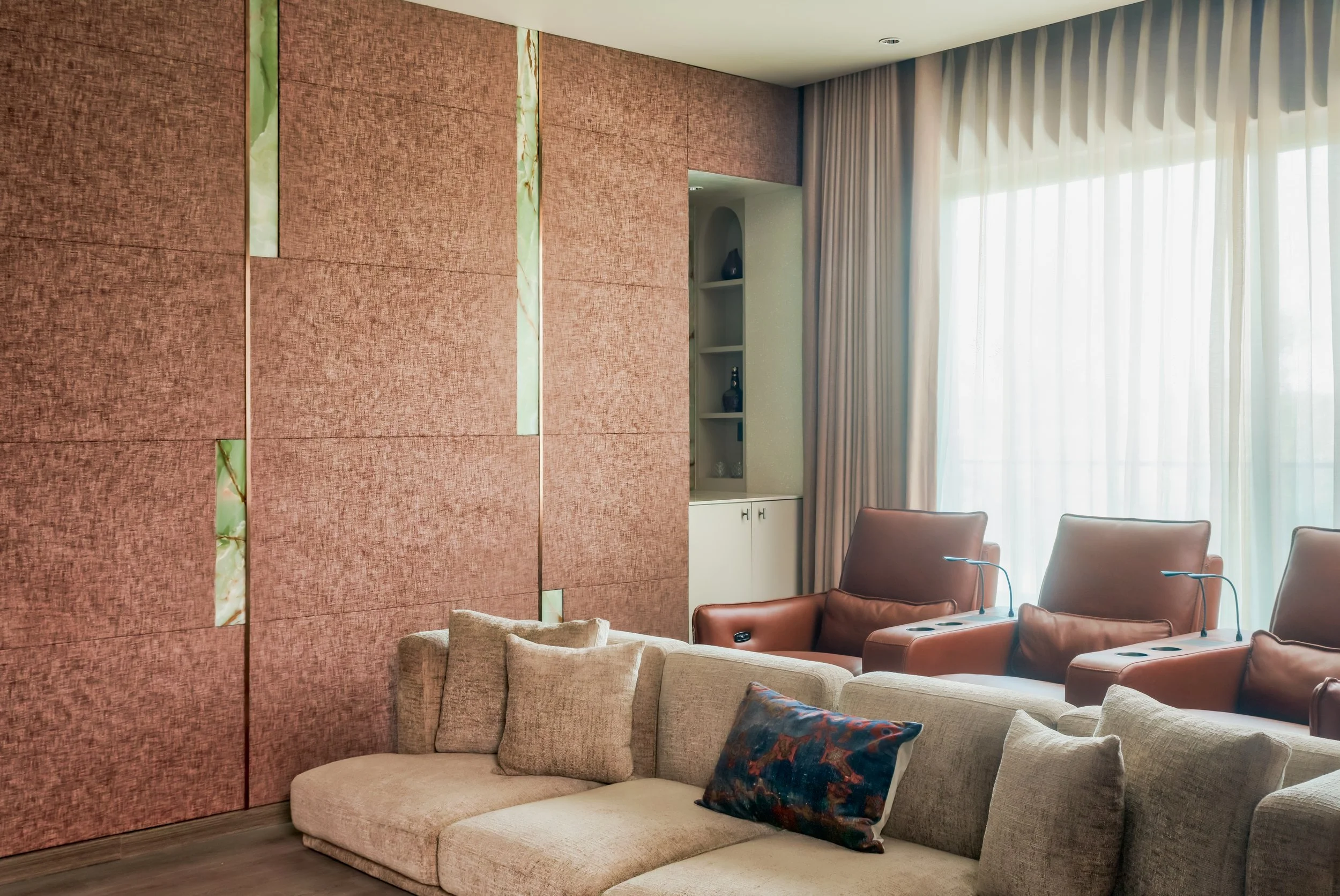 The concept of this house is to create interiors that evoke a feeling of being outdoors taking cues from the sunlight that fills the common areas. This is achieved by using materials such as wood, brick, terracotta and concrete. The bedrooms on the contrary are designed to become cozy pockets of relaxation.